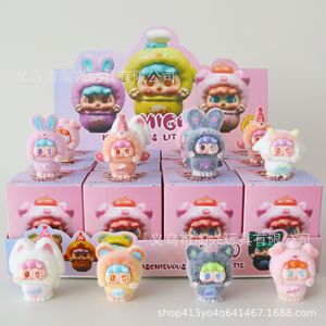 拉布布盲盒泡泡玛特公仔潮玩手办树脂摆件水豚小猪妖儿童盲袋玩具
