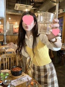 小众短款针织吊带马甲背心叠穿长袖衬衫春秋女装上衣两件套学院风