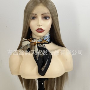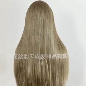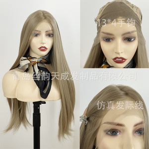 跨境Cos wig假发女亚麻金长直发手钩前蕾丝哑光高温丝全头套