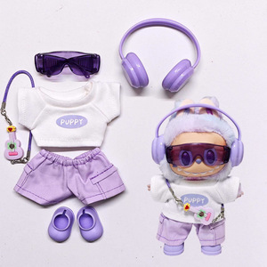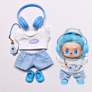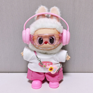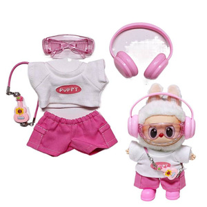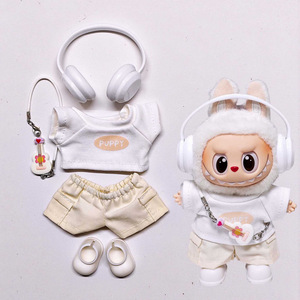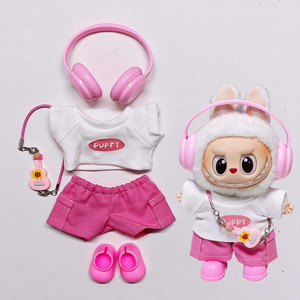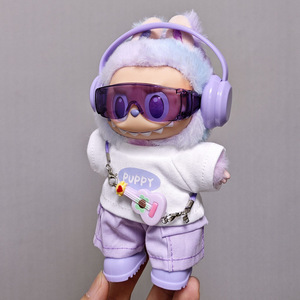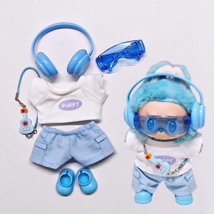 一二三代labubu娃衣运动T恤工装裤套装拉布布马卡龙护目镜休闲套