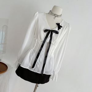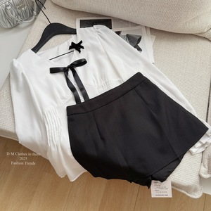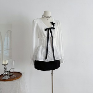 实拍画解WAHJU 蝴蝶结法式温柔气质早秋修身设计显瘦长袖上衣半裙