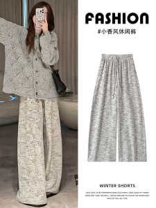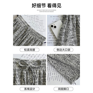 小香风条纹阔腿裤女秋2025新款小个子高腰宽松显瘦韩系慵懒休闲裤