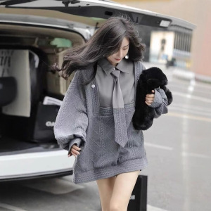 拼接假两件卫衣女2025春秋季新款时尚洋气别致外套灯笼袖上衣潮