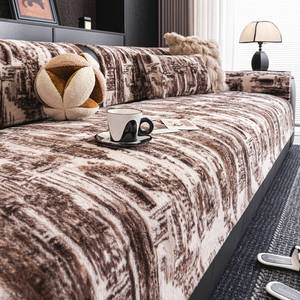 仿兔毛绒沙发垫秋冬加厚2025新款高级感皮沙发固定防滑坐垫盖布巾