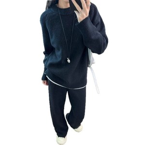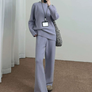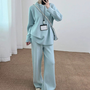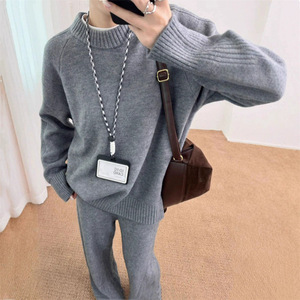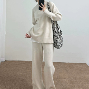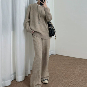 跨境针织套装女秋冬新款韩系慵懒风宽松圆领软糯毛衣阔腿裤套装女