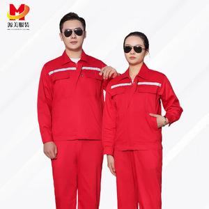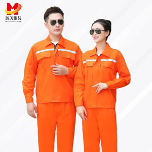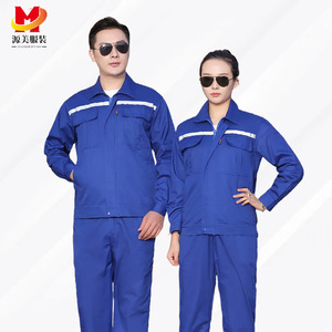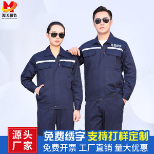 夏季纯棉长袖劳保服定制工地汽修工厂车间男女款耐磨反光条工作服