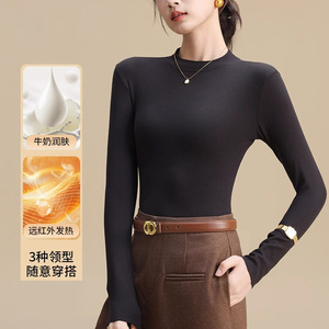 半高领针织打底衫女秋冬年新款基础款修身弹力内搭堆堆领上衣