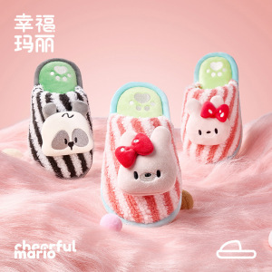 幸福玛丽儿童棉拖鞋女童秋冬季室内家居鞋保暖男童亲子卡通棉拖鞋
