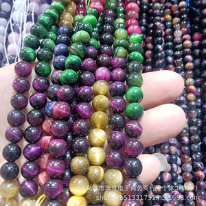 天然石散珠批发星空三色虎眼石圆珠串珠DIY梦幻虎眼石饰品材料批