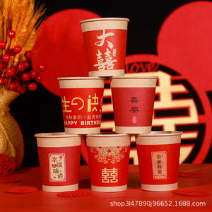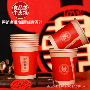 结婚纸杯一次性喜杯子婚宴红色加厚纸杯婚礼家用水杯一次性使用