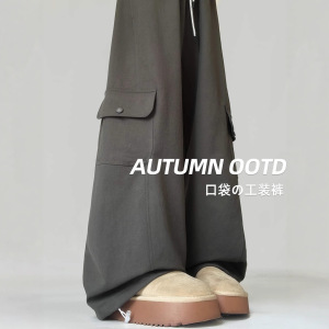美式复古深灰色工装裤女秋季2025新款休闲高腰宽松显瘦阔腿运动裤