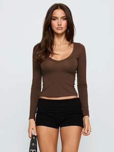 跨境热卖Y2K辣妹时尚内搭t恤吸湿排汗透气潮流感上衣纯欲风打底衫