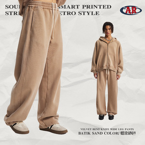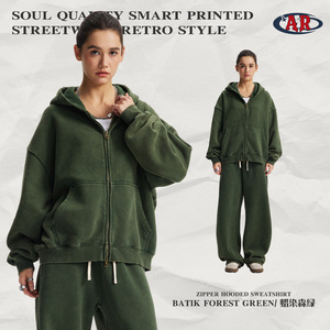秋冬加绒370G短款BOXY版拉链外套水洗蜡染运动休闲连帽男卫衣套装
