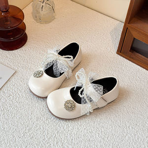 女童春秋新款韩版小皮鞋时尚百搭公主鞋花边舒适方口演出舞蹈单鞋