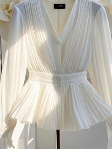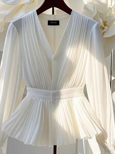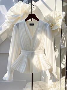 早秋新款气质领长袖上衣轻熟法式小众漂亮小衫轻奢白色衬衫