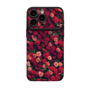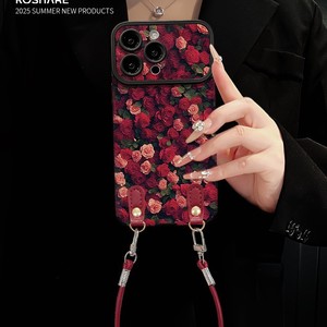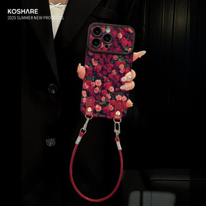 满屏玫瑰花挂绳适用苹果16手机壳iphone14pro大视窗羊皮15软硅胶