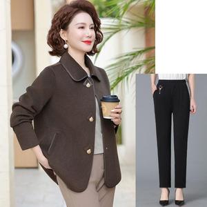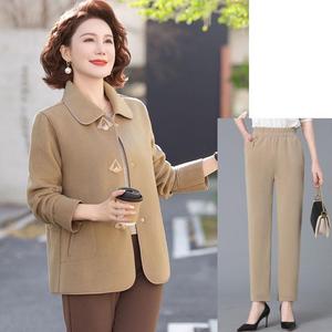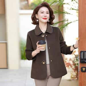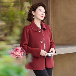 中年妈妈秋装毛呢外套短款中老年女装春秋洋气时尚气质翻领上衣
