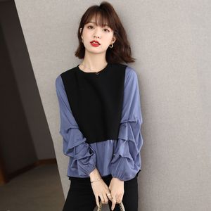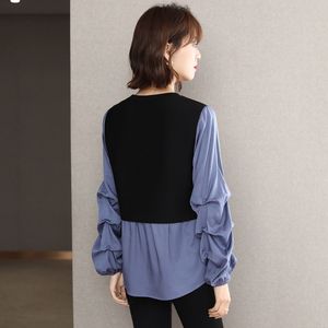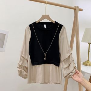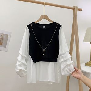 2025春秋新款宽松洋气收褶长袖卫衣女拼接假两件减龄韩版打底上衣