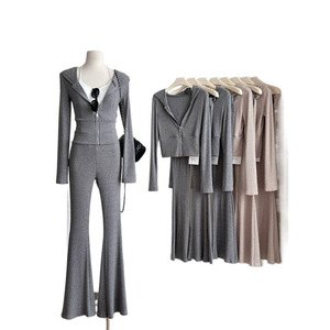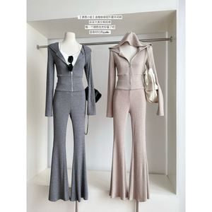 塞纳2025秋季新款一整套ootd穿搭套装连帽修身短外套显瘦休闲裤