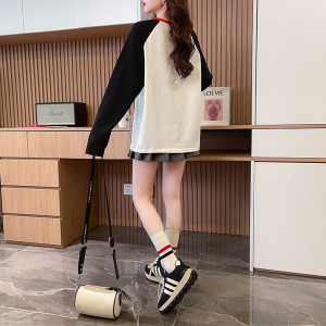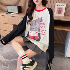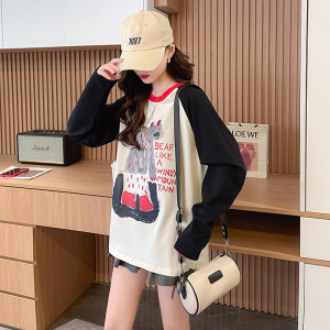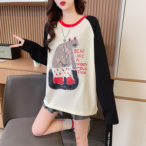 插肩长袖t恤女春秋季设计感小众宽松内搭打底衫显瘦正肩体恤上衣