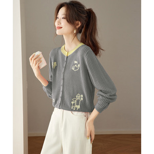 2025初秋新款镂空薄款时尚洋气针织衫女设计感小个子显瘦毛衣外套