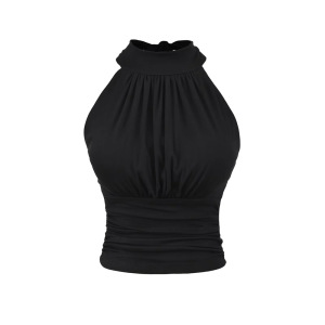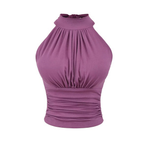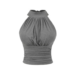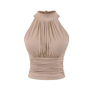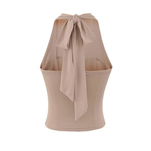 杏色挂脖飘带名媛气质莫代尔带胸垫吊带背心女收腰无袖露肩上衣