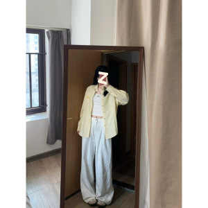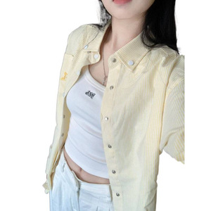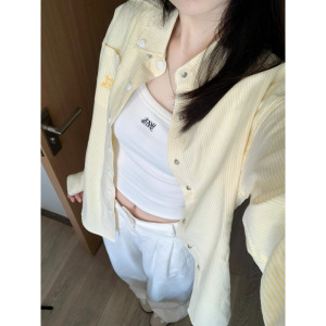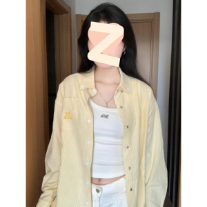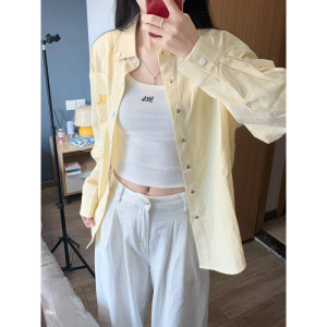 美式复古黄色条纹领衬衫外套女入秋宽松休闲长袖衬衣外搭上衣
