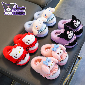 三丽鸥儿童棉拖鞋冬女童保暖加绒毛毛居家亲子库洛米宝宝包跟棉鞋