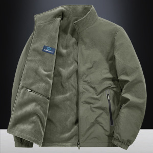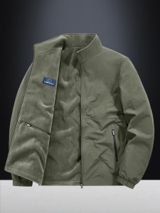 2505秋冬加绒双面穿夹克男士休闲外套中青年立领上衣宽松2502大码