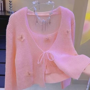 立体装饰针织开衫吊带套装女2025春季新款设计感长袖两件套上衣