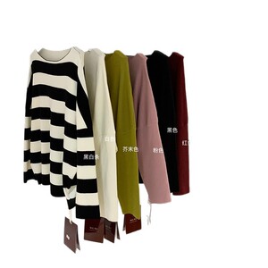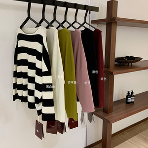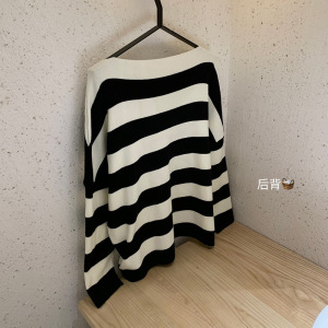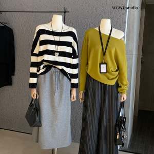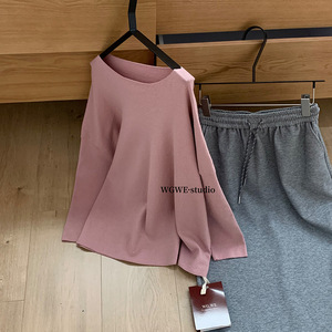 WGWE7069韩系慵懒风斜肩长袖纯欲气质宽松显瘦松弛感露肩上衣