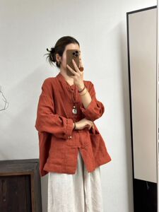 25秋季新款 复古中式亚麻盘扣开衫 文艺通勤宽松版小外套女
