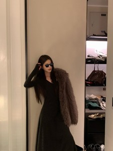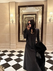 SUNONEONE 黑色针织连衣裙女气质长袖收腰显瘦百搭长裙