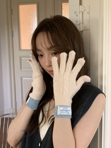 秋冬季可触屏五指保暖拼色韩版2025新款毛线针织手套百搭防寒加长