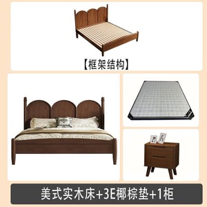 复古美式实木床双人床1.5米1.8米现代简约中古风公寓出租屋民宿床