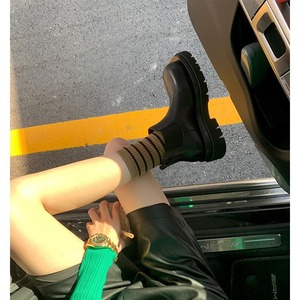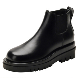 葡萄妈同款 2025春秋季新款圆头英伦风马丁厚底烟筒切尔西短靴女