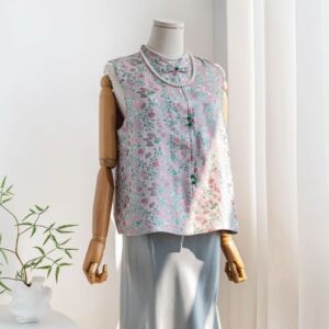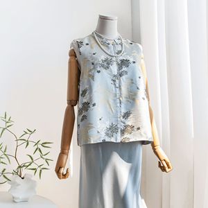 新中式改良新款国潮盘扣小立领提花织锦金重工刺绣马甲上衣外套