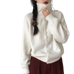 跨境外贸高领针织开衫女2025秋冬新款韩系慵懒风宽松简约毛衣外套
