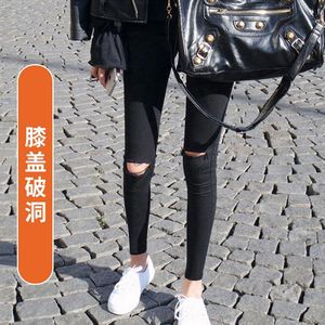 休闲裤女大码秋季外穿胖mm高腰显瘦紧身破洞小脚铅笔裤直筒打底裤