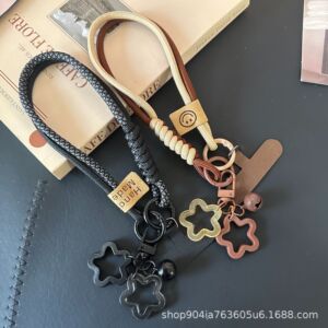 手机英伦编织挂绳短款手绳高级轻奢手腕通用星星手机链挂件女款