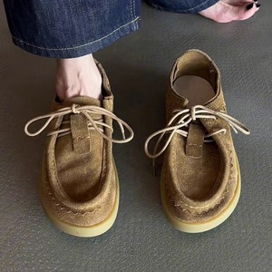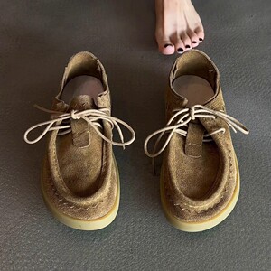 羊皮版~2025新款复古风圆头系带厚底休闲百搭一脚蹬懒人乐福鞋女