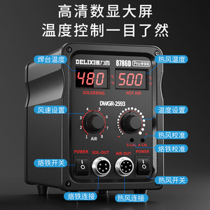 德力西热风枪拆焊台二合一8586电烙铁8786D手机电脑焊接维修工具