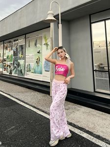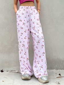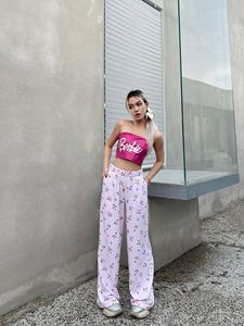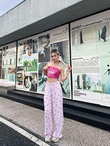 Hollister织带字母草莓碎花格子裤垂感阔腿格纹高腰宽松休闲长裤