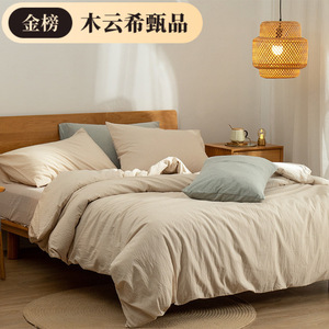 全棉色织水洗棉四件套纯棉无印厂家供货床品被套日式良品床笠批发