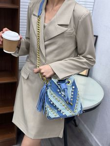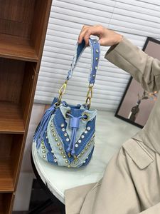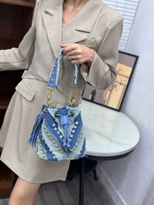 欧美时尚小众轻奢时尚镶钻水桶包高级感牛仔布铆钉手提单肩斜挎包