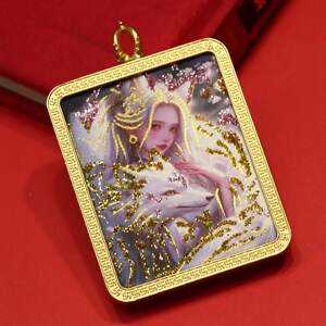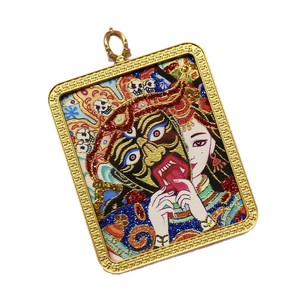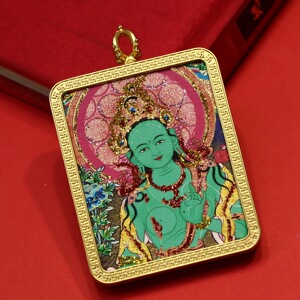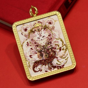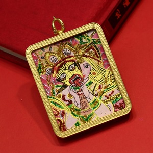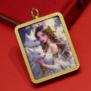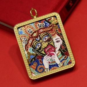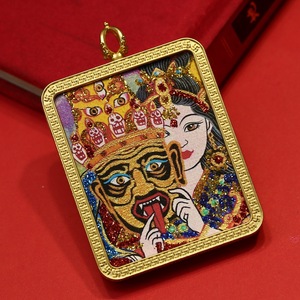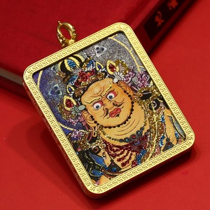 手绘彩金加描金唐卡嘎呜盒九尾狐黄财神仙吊坠项链旅游纪念佛牌