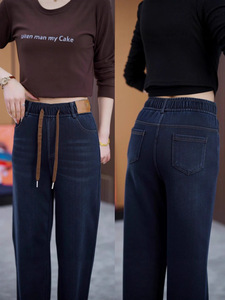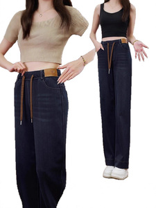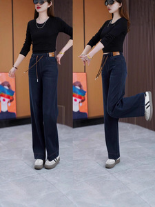 夏季新款高腰宽松显瘦直筒休闲裤阔腿窄版长裤时尚牛仔阔腿裤女款