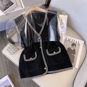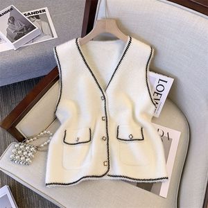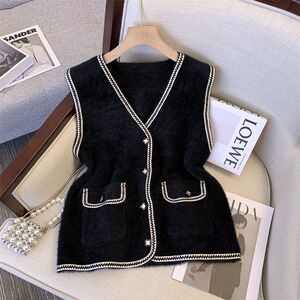 大码坎肩背心马夹女春新款宽松显瘦小香风水貂绒上衣毛呢外套