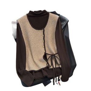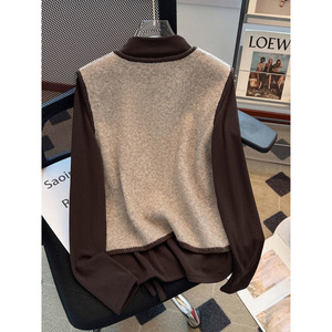 杏色马甲+咖色打底衫两件套