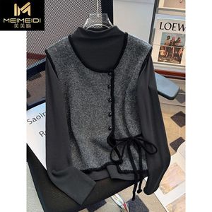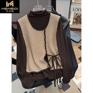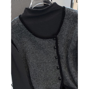 法式小香风圆领针织马甲背心两件套女秋冬季半高领打底衫上衣套装